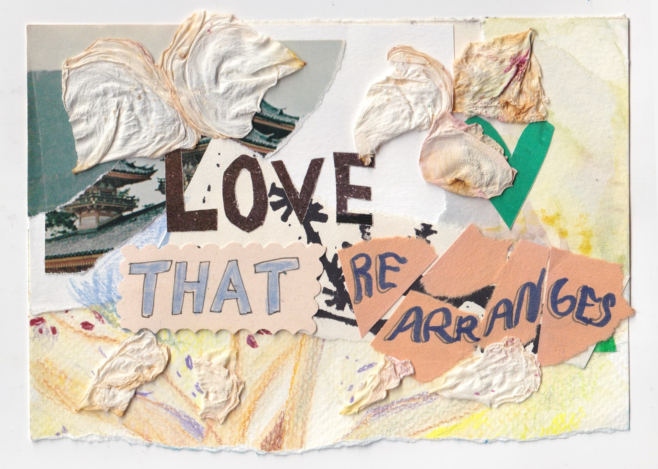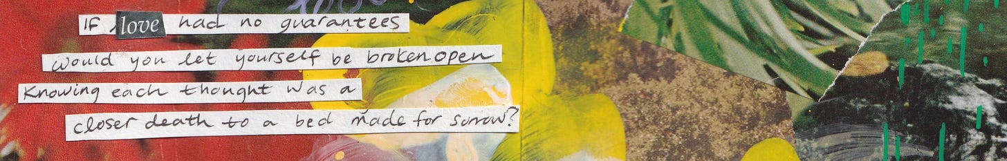 Being caught in a love that rearranges, requires courage to surrender to the full rearranging. In the past, I’ve needed the secure markers of future vision alignment to feel I could buoy further into sense-making a relationship. To make sure that we would change alongside the same course and choose each other because of a myth that the present was a map for the future.