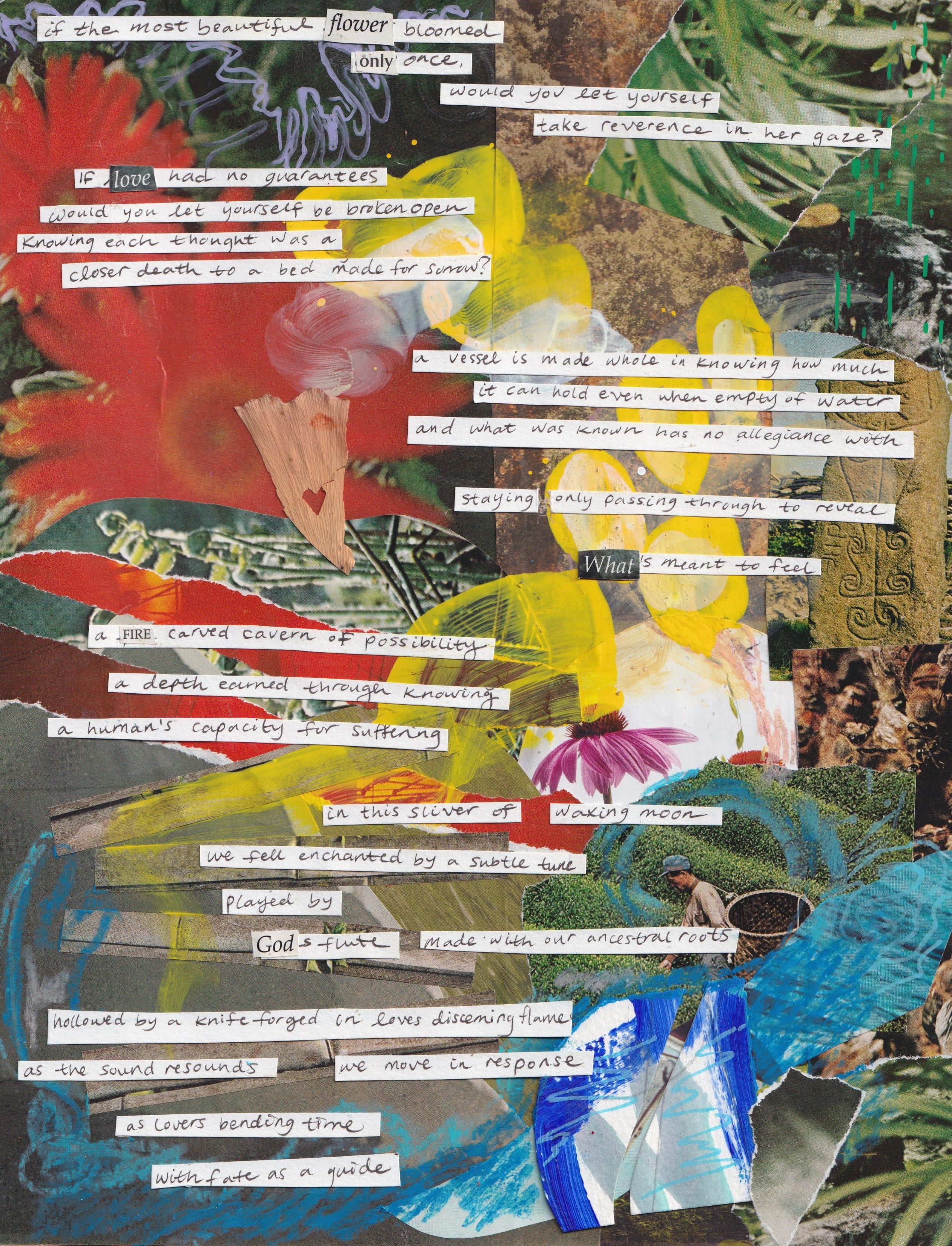One that came out of nowhere. One that settled comfortably into all the crevices and cracks left open by past loves. One that shook the entirety of my being and rearranged me within myself. I had all the pieces ready. What I had been waiting for was an earthquake of cosmic intent to lock each piece into its re-knowing of w-holy matrimony with self.